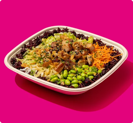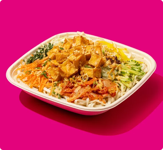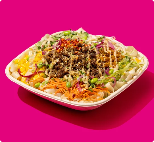 Our bowls start with your choice of brothless noodles or rice. By skipping the broth, the flavors stay layered and vibrant, whether you’re dining in or ordering for the office. From there, each bowl comes together with fresh ingredients, signature sauces, and thoughtfully prepared proteins for a satisfying bite that never feels heavy.